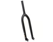 FEATURES: 31.8mm to 25.4mm Chromoly tapered legs with a forged end notch for peg clearance. Thick (24t) 1-piece rust proof Chromoly steerer tube. 5mm thick dropouts with new aggressive 26mm offset for instant response, triangular cutout for weight savings. CNC machined Black Alloy top cap included.