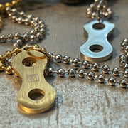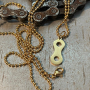 The universal chain link cycling icon handcrafted from stainless steel in its original size. The front is polished, the back is brushed in a matte finish with the number 51 embossed. A beautifully simple and elegant yet sporty pendant to wear on and off the bike. Now available in strong stainless steel and elegant 14k gold.