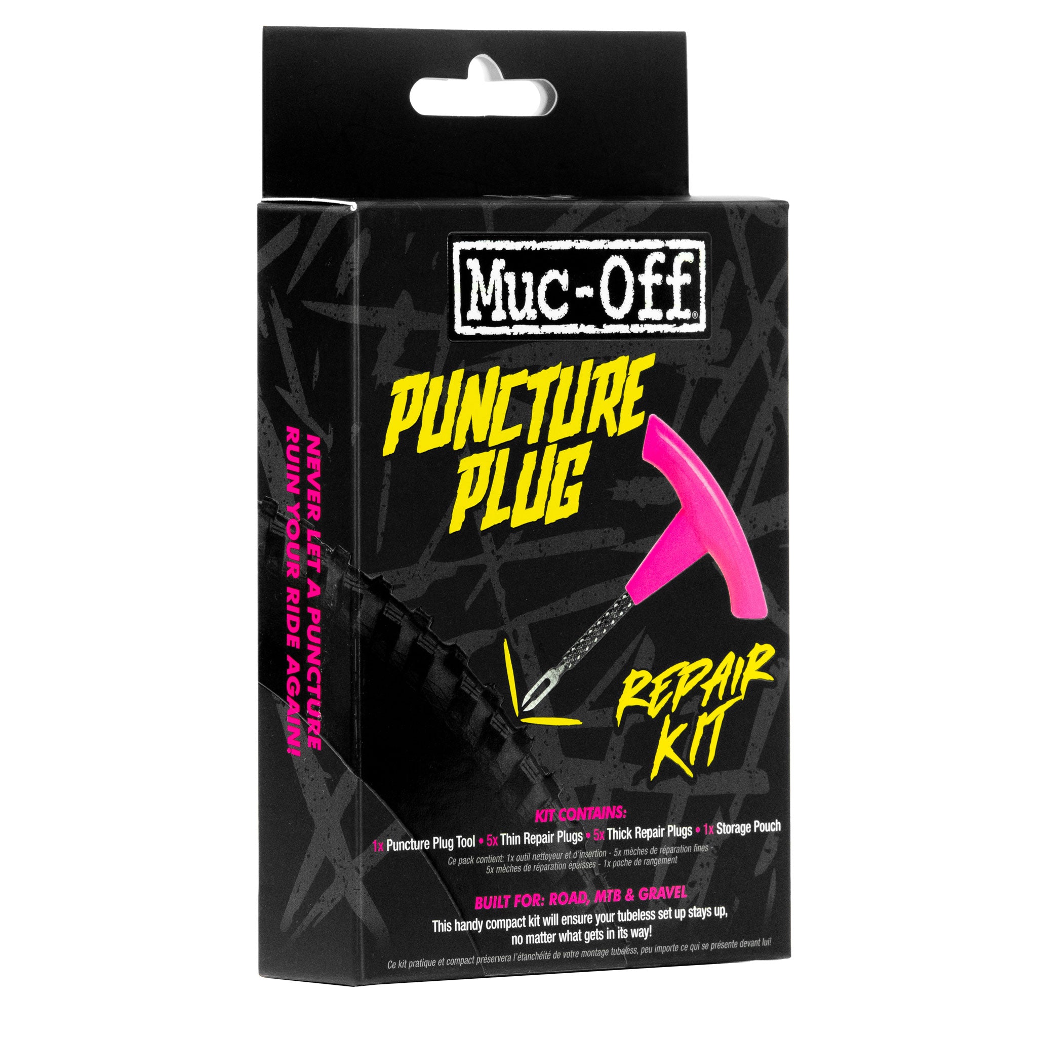 A handy compact kit will ensure your tubeless set up stays up, no matter what gets in its way Tough and durable polypropylene handle on a stainless steel 2 in 1 tool design which has a reamer and plug tool Includes: plug tool, 5 thin plugs, 5 thick plugs, and a storage pouch